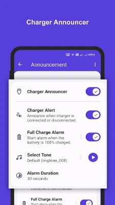 Battery Announcer lightweight app that notifies the user at user-defined battery levels. With the help of this app, you can know about your battery level without looking at your mobile.