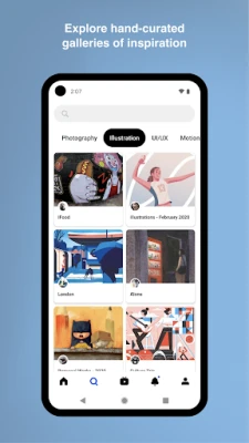• Browse curated projects across 100s of creative fields, including graphic design, photography, illustration, 3D, art, and more.