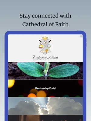 Cathedral of Faith - Dallas/Ft. Worth is an interactive app that will allow you to stay connected to the Cathedral of Faith church family. Through this app you will receive notices about special events and services that will take place at Cathedral. You will also have access to our bookstore, online giving, and words of inspiration from our leaders.