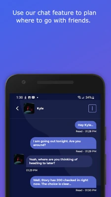 Just as other GPS apps can show you where a ride is or where traffic is - right now, CheckN shows you where the people are - right now. The app tells you where the hottest places and venues are in real-time. It shows where everyone in your extended friend group is right now. It also shows the thumbnail pics of the people you haven’t met yet who are at a particular location right now. It even shows the ratio of men to women at each location.