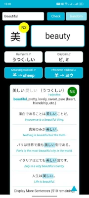 -Radical allows you to boost vocabulary acquisition by giving you the meaning of the kanji involved, samples sentences to see the word in context, and a JLPT level tag so you know if you need to memorize the word. The search function is available in both English and Japanese.