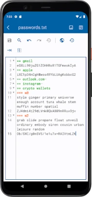 Store any text safely. Data is encrypted on your device using a passphrase you select.