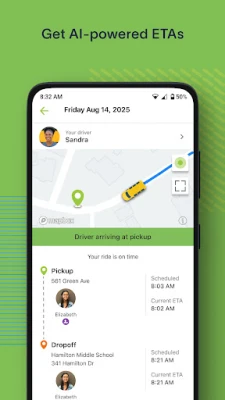 AI-POWERED ETAs See the estimated time of arrival for each stop of your ride.