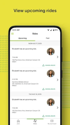 SECURE ACCESS The Zum Rider app is available to districts partnering with Zūm for transportation services. Access is granted according to district policy.