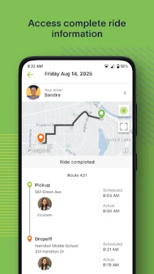 COMPLETE RIDE INFORMATION View your upcoming rides for the week along with your ride history.